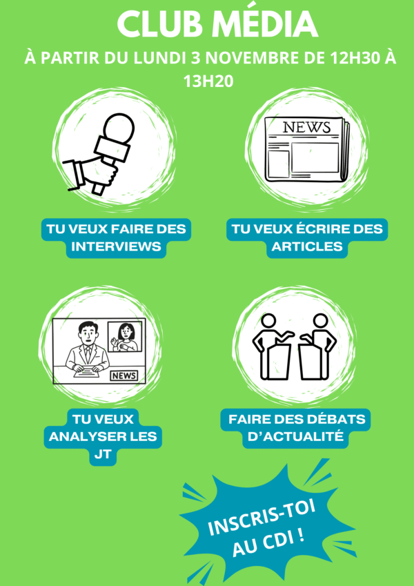 Le vendredi 19 septembre à 11h, l’association Feyzin Europe, dans le cadre des Journées européennes du patrimoine, viendra présenter l’exposition sur la Grande Guerre, en provenance de La San-Priiode de Saint-Priest. La présentation se tiendra au CDI. .